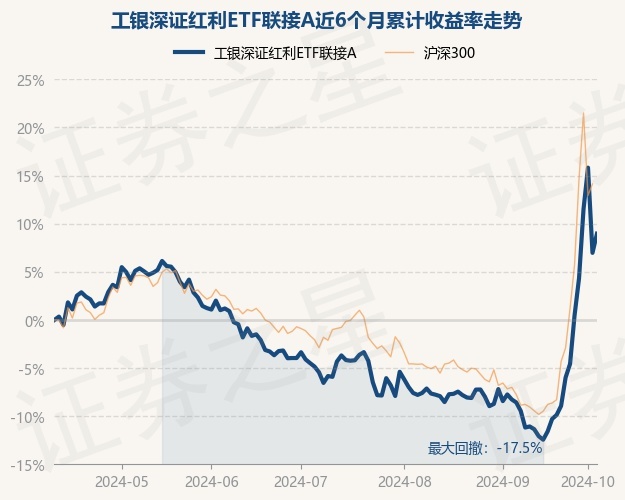 本站音信,10月10日,工银深证红利ETF连合A最新单元净值为1.0836元,累计净值为1.8979元,较前一来去日飞腾1.86%。历史数据显露该基金近1个月飞腾22.52%,近3个月飞腾15.81%,近6个月飞腾8.96%,近1年飞腾7.15%。该基金近6个月的累计收益率走势如下图: